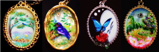 最近流行りのレジン樹脂を使って3Dアートのペンダントなど、ちょっと他にはない作品を作っています。